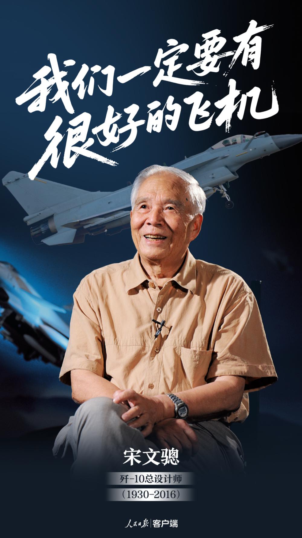 "我们的歼—10飞机今年已经18岁了,今天,终于可以参军报效国家了!"2003年,在歼—10飞机正式交接仪式上,总设计师宋文骢沉缓而深情地说。现场的人们眼含泪花,报以热烈的掌声。如果说歼—10飞机是个孩子,那么没有第二个人比孩子的父亲宋文骢更了解这艰难的成长过程。今天,当中国的战机惊艳世界,当我们为祖国自豪的时候,更加难忘以宋文骢为代表、为了中国新一代战机呕心沥血的中国航空人。