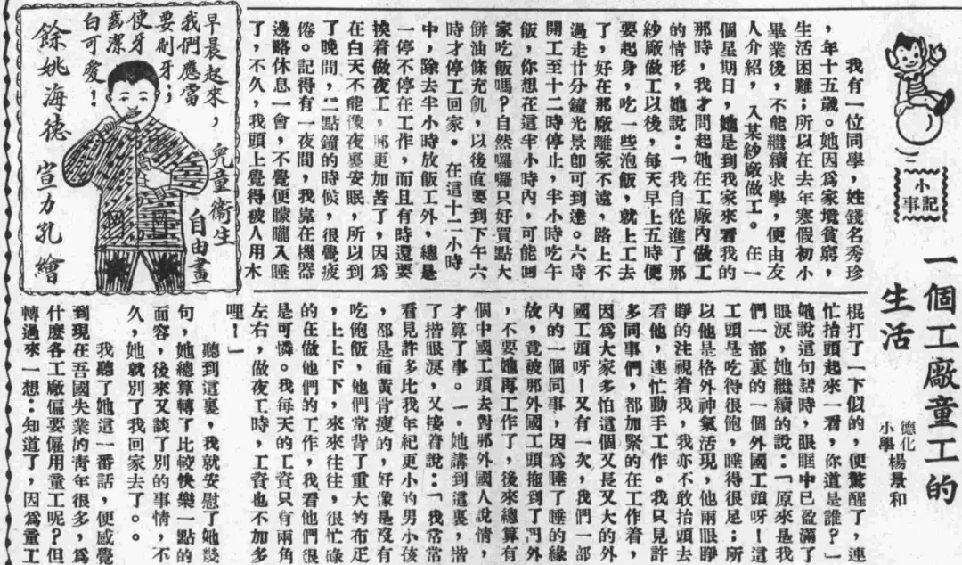 值得一提的是,除了一般的报道以外,《儿童日报》上尚根据国内外时事,发表了许多评论,鼓励儿童维护国家统一、反帝国主义,增强儿童对外抗战的信心。