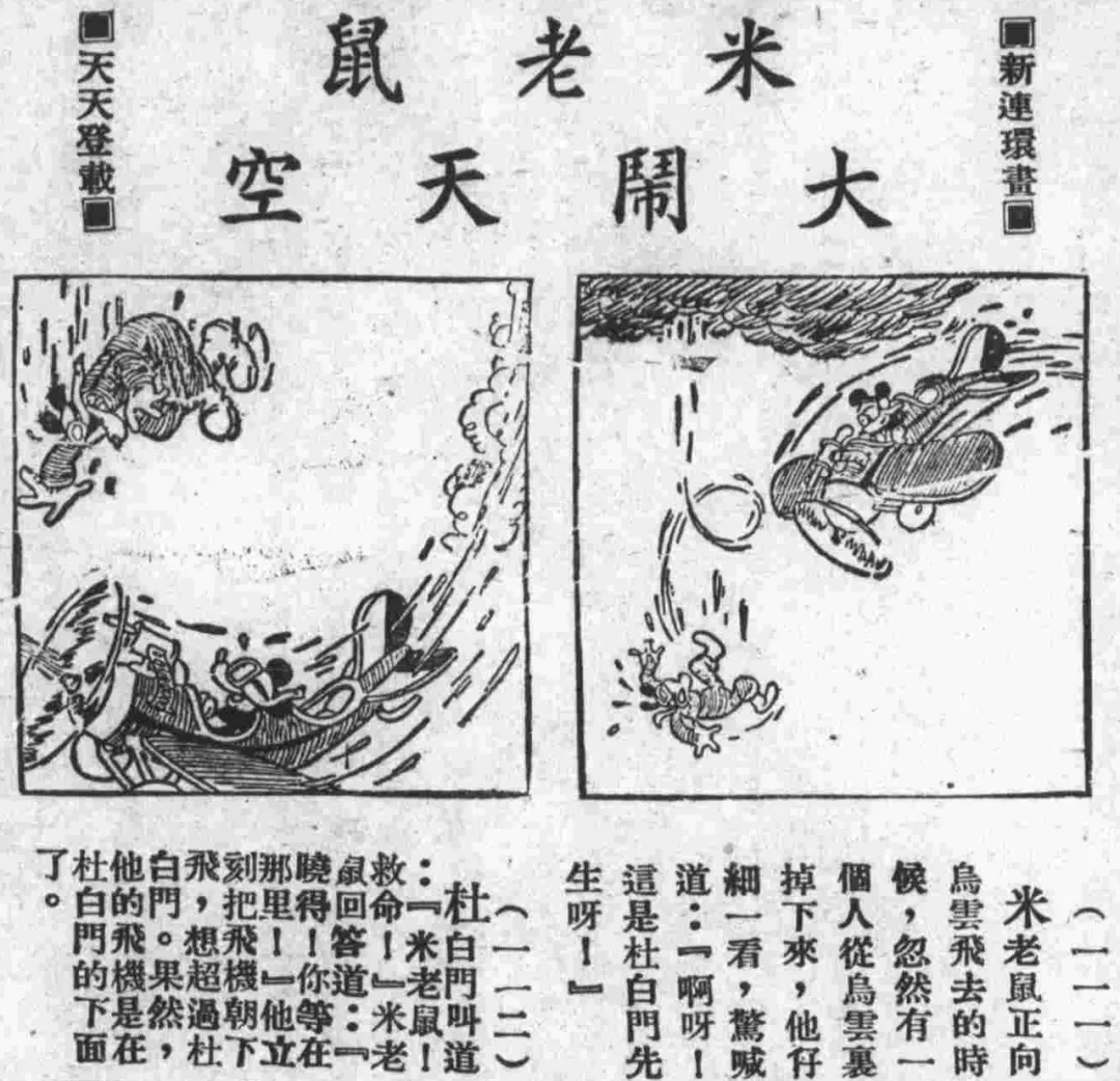 《新儿童报》的第三、四版为《新儿童副刊》与《新儿童园地》,主旨是“供给浅明之时事报告,补充小学校活用教材”,为各类作文、人物传记、教材与文艺作品。下图为《新儿童报》第三、四版中的米老鼠连环画与对于五月相关历史事件的纪念。