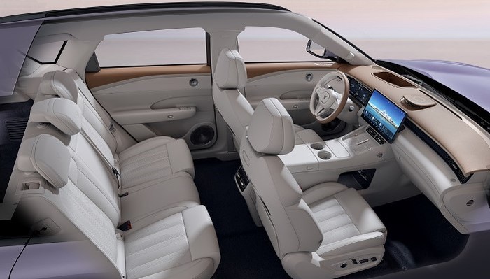 新车内饰取消可升降三联屏,改用15.6英寸2K悬浮中控屏,运行鸿蒙5系统支持手机互联及超级桌面。副仪表台集成双50瓦无线充电与7升冷暖冰箱,并创新设计副驾挂钩。新增琥珀棕等三种配色方案,中控台覆盖仿麂皮材质与白桃木饰条。​