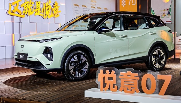 悦意07为全新车型,外观较为简约流畅,采用分体式LED灯组与封闭式前脸设计,侧面黑色悬浮车顶搭配18/19英寸轮辋。车身长宽高为4.75/1.88/1.71米,轴距2.77米——与主流竞品之一的比亚迪宋Pro DM在长度及轴距上略有优势。尾部贯穿式灯组与隐藏排气维持简约风格。
