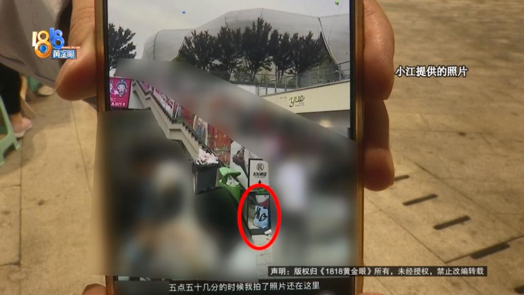 小江说,当时演唱会也没有心思去看了,她找商场工作人员看了监控,发现包是大概下午 6 点 08 分被拿走的。