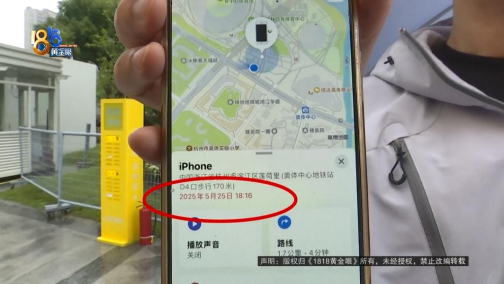 采访时,小江拨打了那部手机的号码,处于关机状态。使用查找功能,显示最后的更新时间是 5 月 25 日 18 点 16 分,位置在莲荷里商业街。