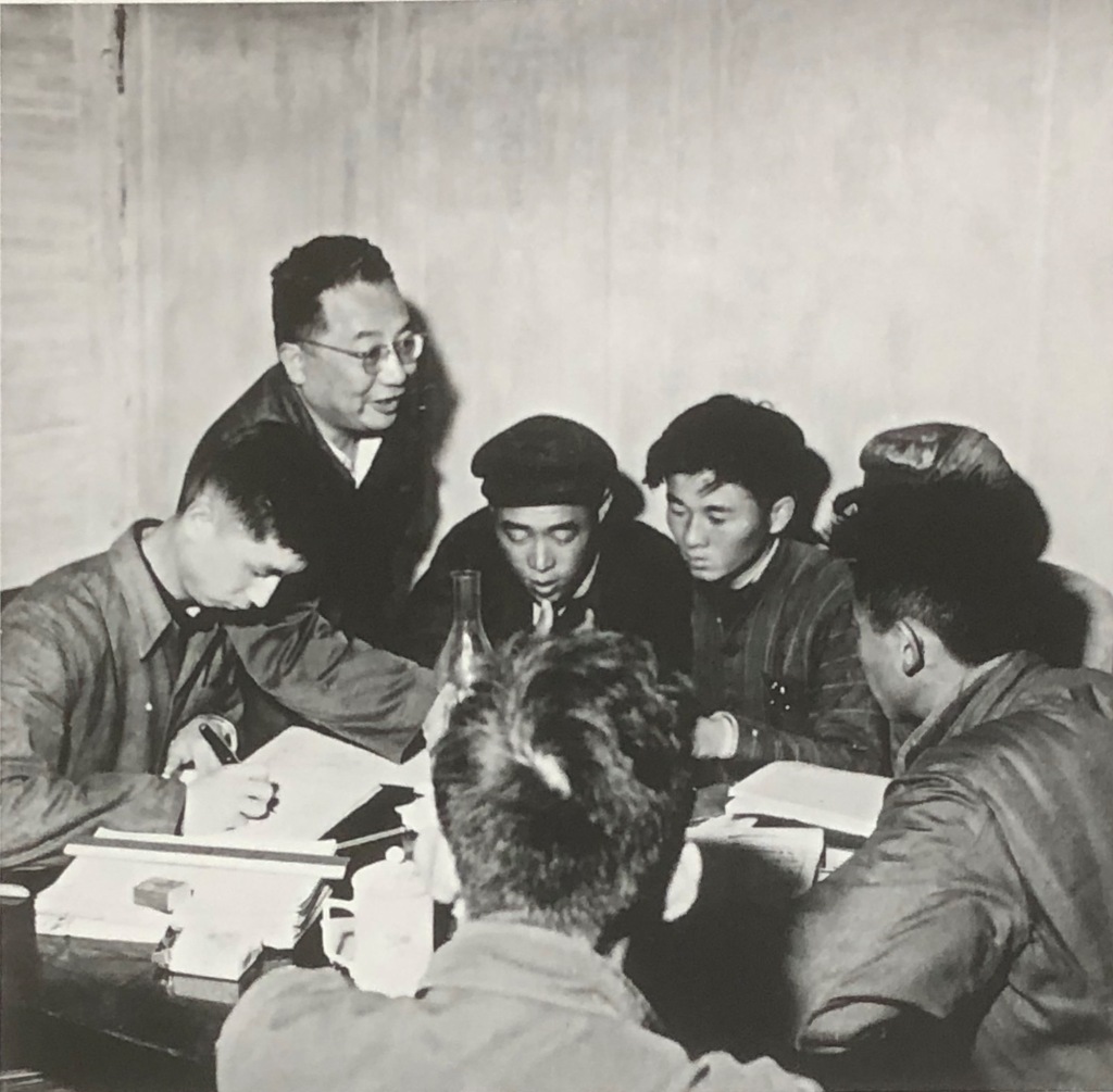 1957年5月,费孝通在苏州吴江县开弦弓村考察时与合作社青年干部在一起。