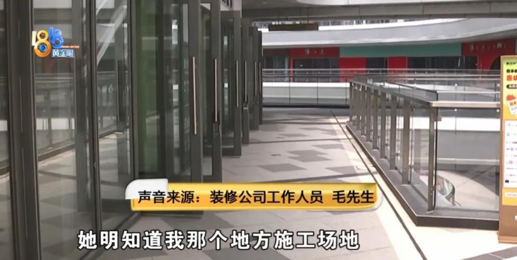 装修公司工作人员 毛先生:(钉子)你说是我们这边的,我也不敢确定,因为这边施工有两三个地方在施工,可能就是在我们木工封板的时候,有一个钉子落在这个边上。我们有那个地垫起来的,那门上也贴了施工区域。你问她为什么别人没扎到呢?那么多人走来走去的,她明知道我那个地方施工场地,她怎么会往那边走呢?