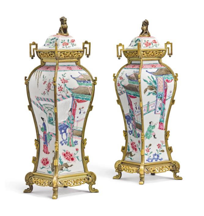 外销瓷:清代 四方铜鎏金镶嵌:18世纪法国,苏富比