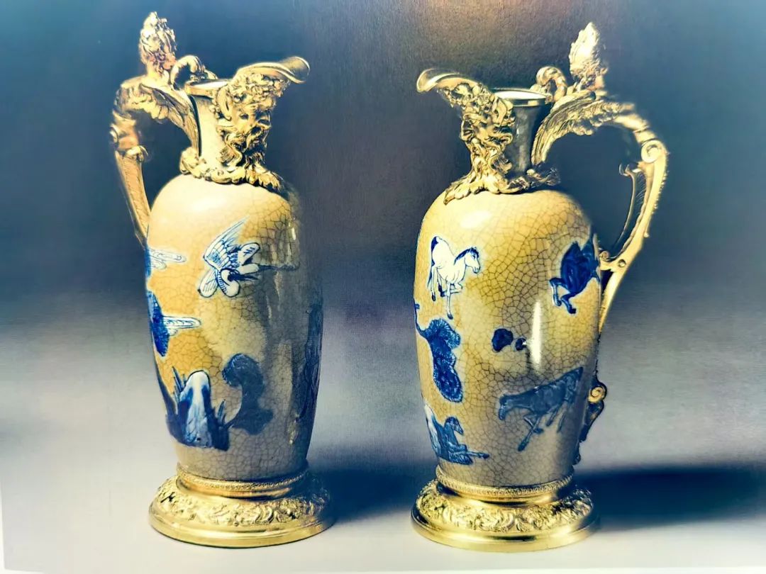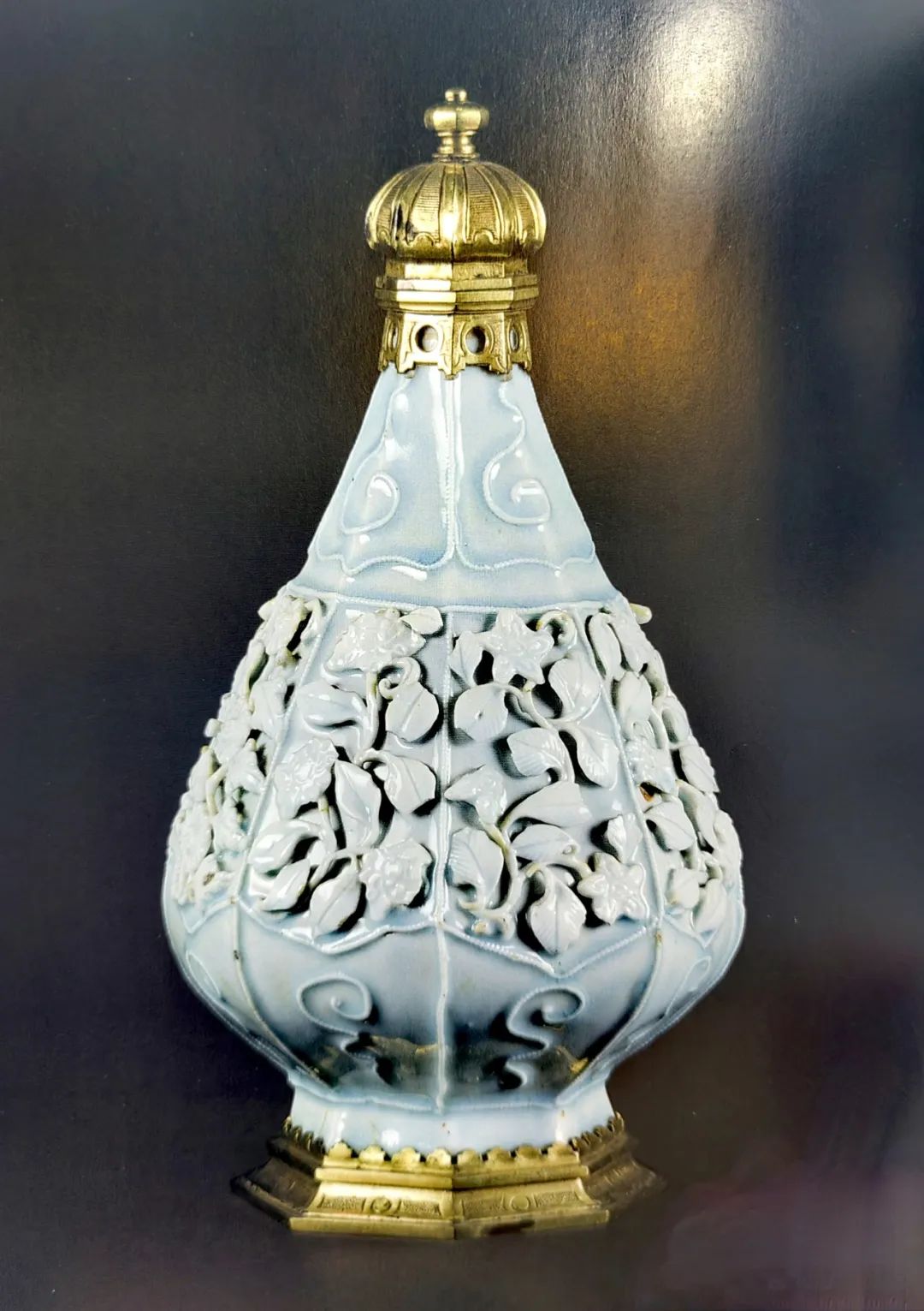 鎏金铜附件的加入,令作为陈设器的青瓷瓶,一变为具有装饰效果的执壶——这是18世纪法国人的手笔。