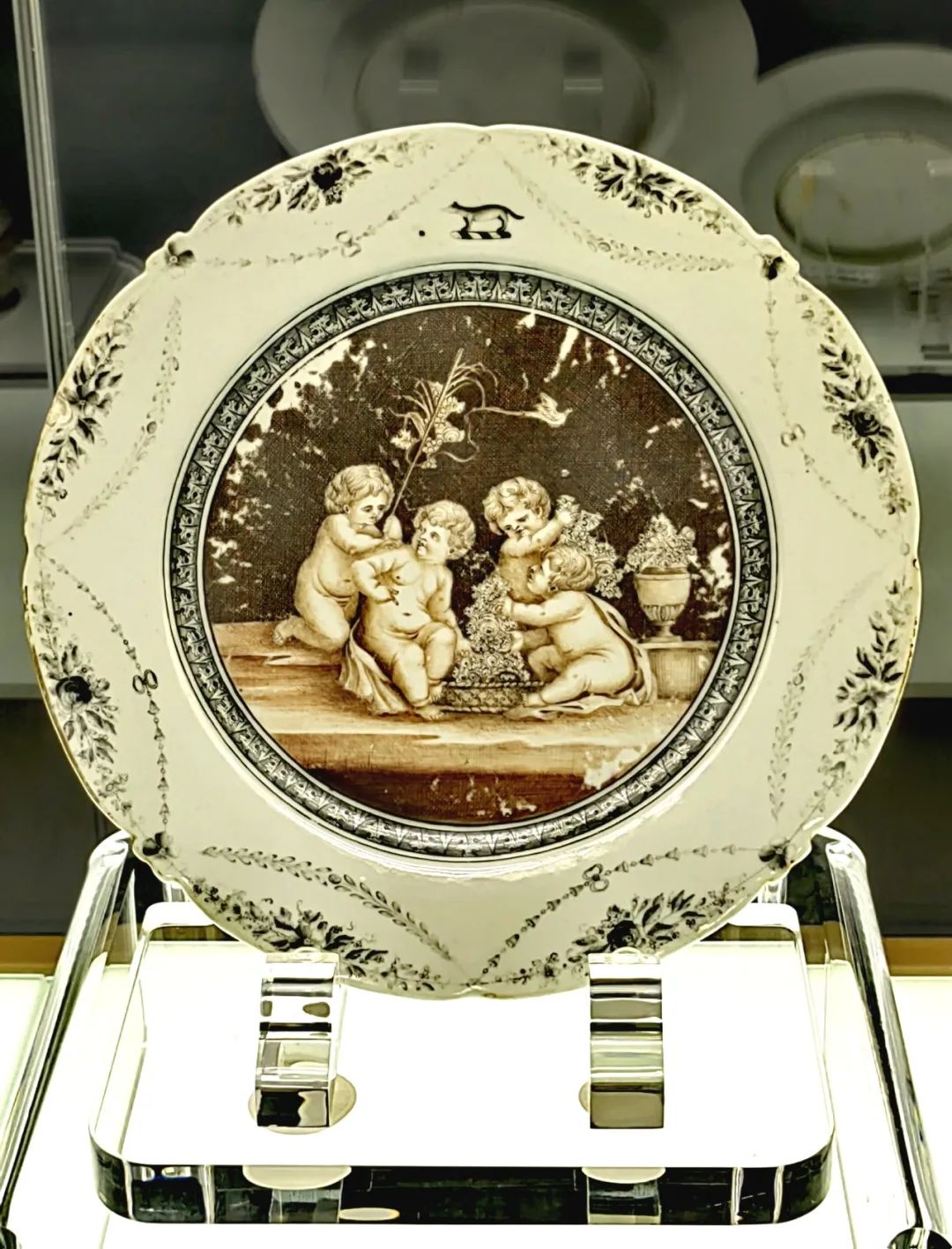 这件产于乾隆时期的瓷盘,墨彩描金、以素描和版画形式,绘制四名裸体卷发小天使,背景是一片浓郁繁茂的树冠。它表达着生如“夏”花的主题。瓷间身份的密码在哪里呢?