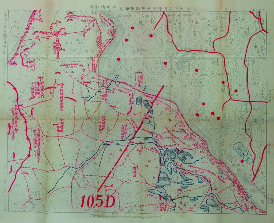 《二十八年二月修河对阵间敌对我阵地侦察图》