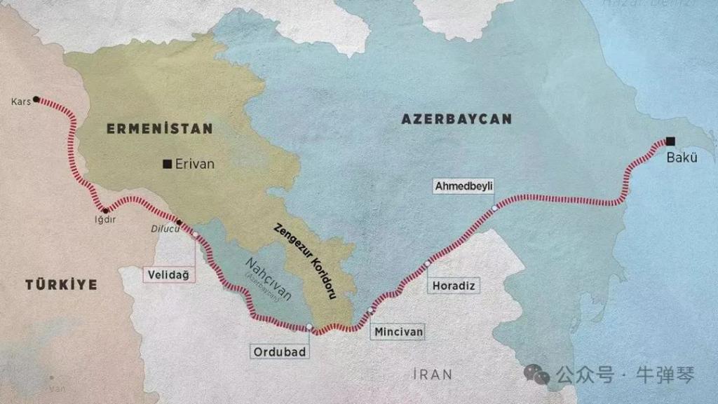 赞格祖尔走廊,穿越亚美尼亚,连接阿塞拜疆本土和飞地纳希切万,并通往土耳其。据说,这遭到俄罗斯的强烈反对,认为这将削弱俄罗斯的影响力。