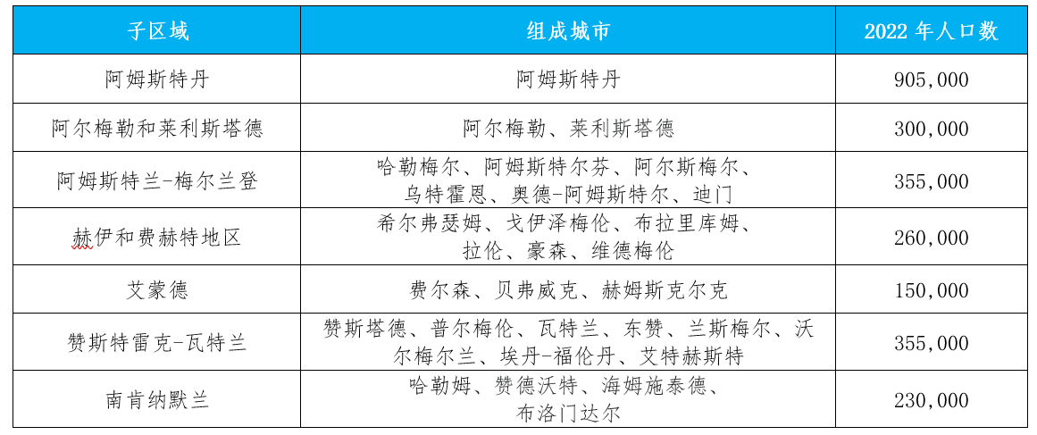 表1 阿姆斯特丹大都市区七个子区域基本状况