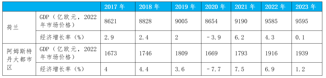 表2 2017年-2023年荷兰及阿姆斯特丹大都市区经济状况