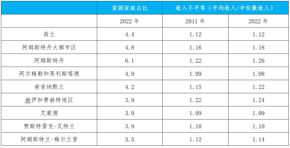 表3 阿姆斯特丹大都市区贫困家庭比例及收入不平等状况