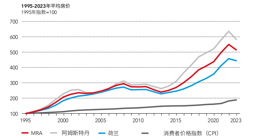 图3 1995-2023年平均房价指数(1995年指数=100) 数据来源:荷兰统计局