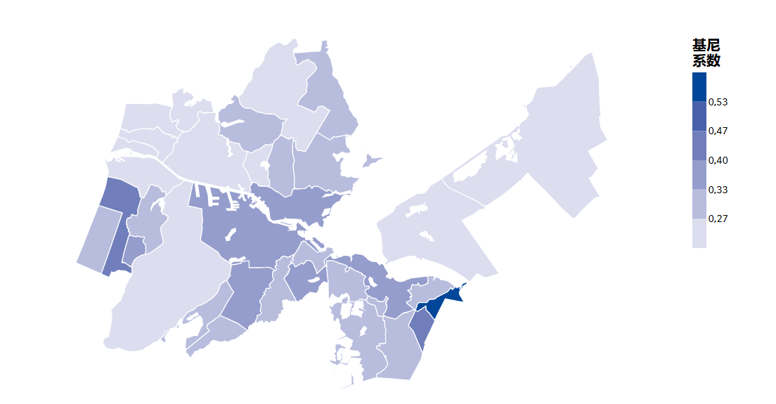 图4 阿姆斯特丹大都市区各城镇基尼系数