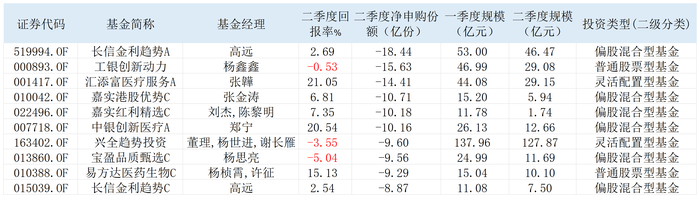 汇添富创新医药A、永赢医药创新智选C、华夏军工安全C二季度的回报率分别为21.65%、27.85%、16.69%,净申购份额分别为14.55亿份、12.41亿份、12.06亿份。