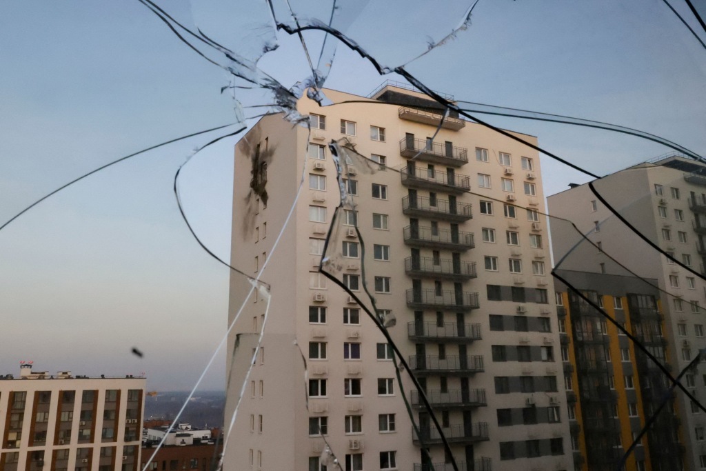 当地时间2025年3月11日,莫斯科地区萨普罗诺沃村发生无人机袭击后,当地居民弗拉迪斯拉夫在公寓中望向室外,他本人被窗户玻璃碎片所伤。