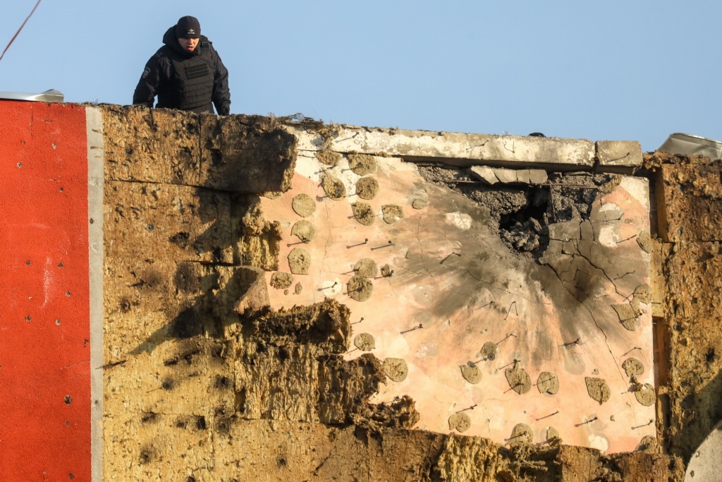 当地时间2025年3月11日,俄罗斯莫斯科郊区,萨普罗诺沃村,一栋公寓楼被无人机残骸坠落的碎片破坏。