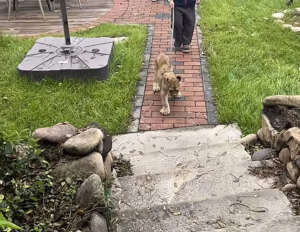 极目新闻图据媒体报道,江苏宿迁一家田园度假区的酒店里,有工作人员牵着幼狮进入客房进行“萌狮叫醒”服务...