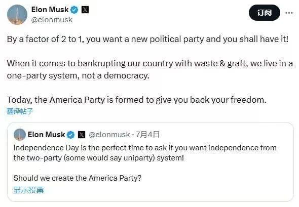 马斯克宣布:就在今天,美国党成立了!特朗普“大而美”法案,为何成了特斯拉的致命“资讯