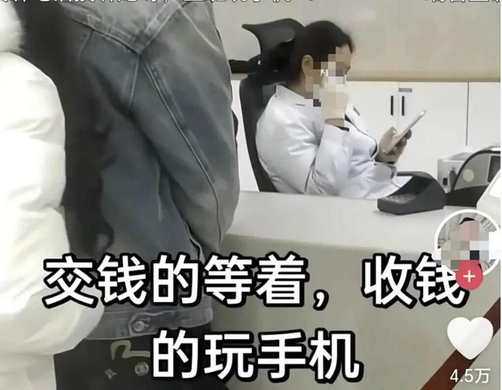 医院缴费窗口收费员玩手机致多人排队,媒体:通报措词用心良苦资讯