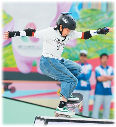 上海队选手徐琳泷在滑板比赛中。新华社记者刘坤摄日前,群众展演舞龙舞狮南狮自选项目决赛在佛山举行。新华...