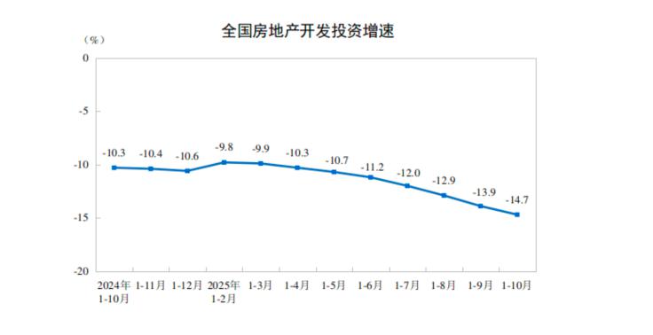 国家统计局:1—10月份全国房地产开发投资73563亿元同比下降14.7%资讯