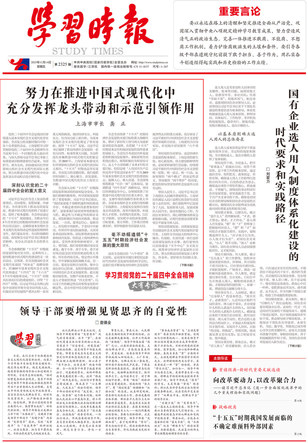 龚正学习时报头版撰文:努力在推进中国式现代化中充分发挥龙头带动和示范引领作用资讯