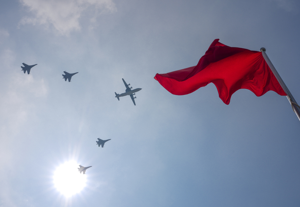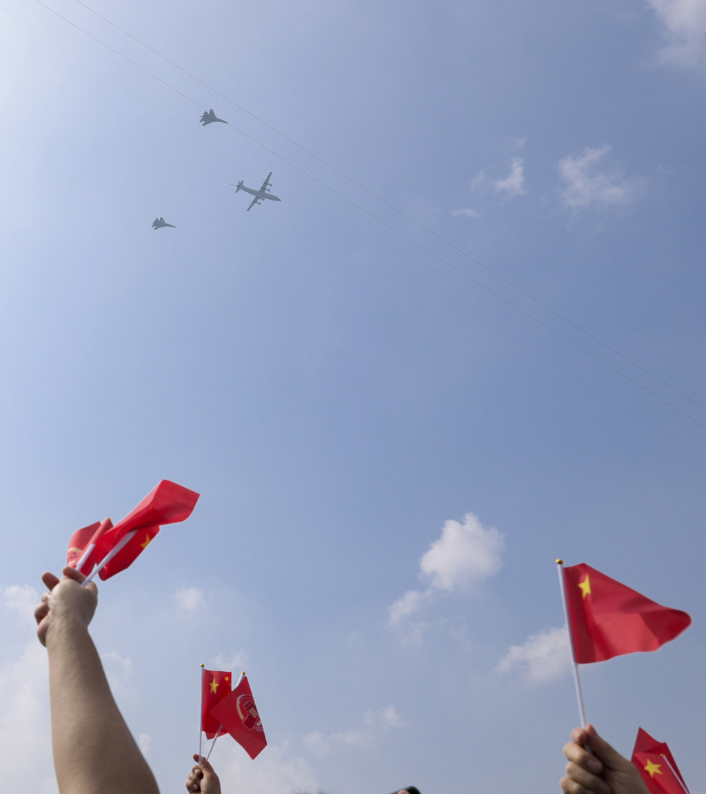 9月3日,纪念中国人民抗日战争暨世界反法西斯战争胜利80周年大会在北京隆重举行。空中梯队接受检阅。 新华社记者 肖艺九 摄