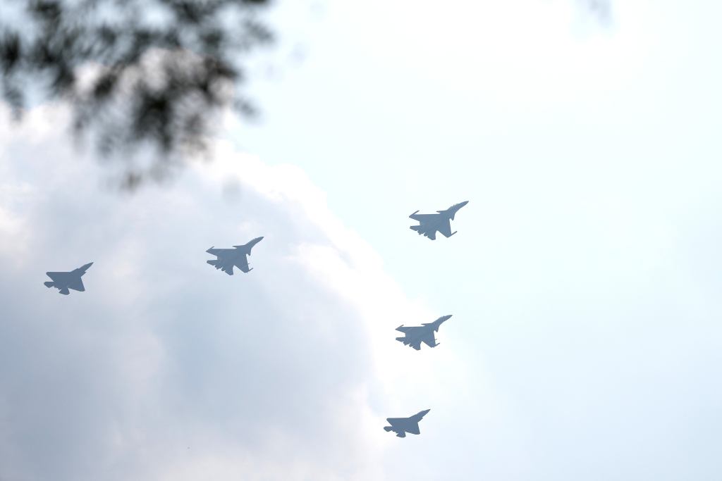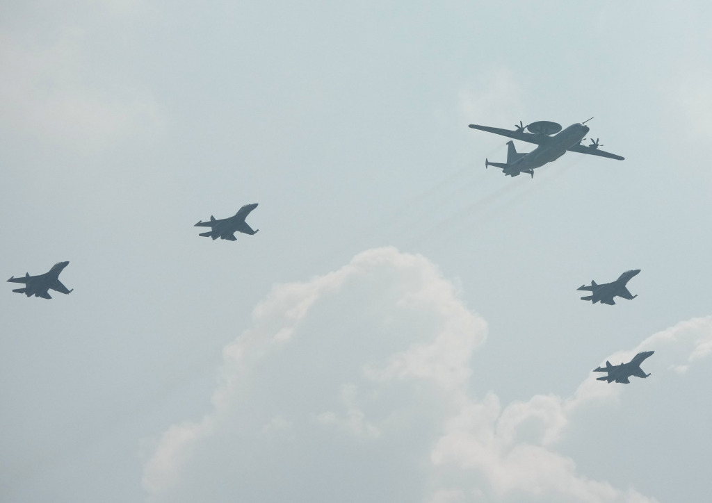 歼击机梯队由歼-16D、歼-20、歼-20A、歼-20S、歼-35A组成。