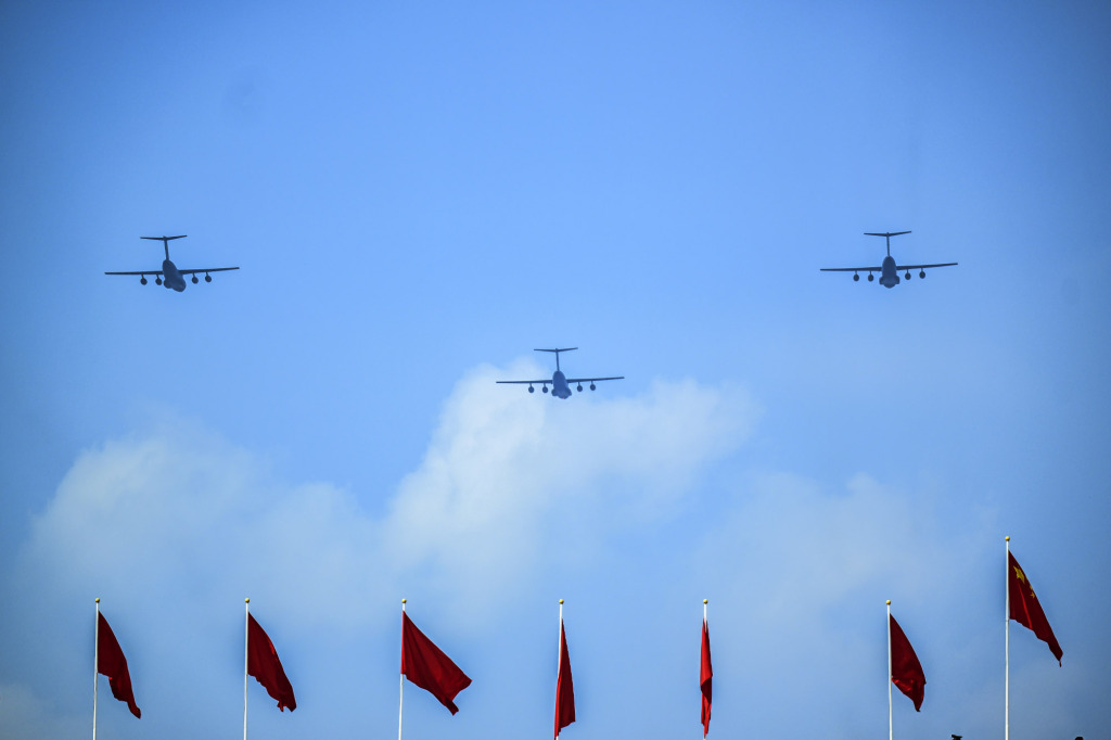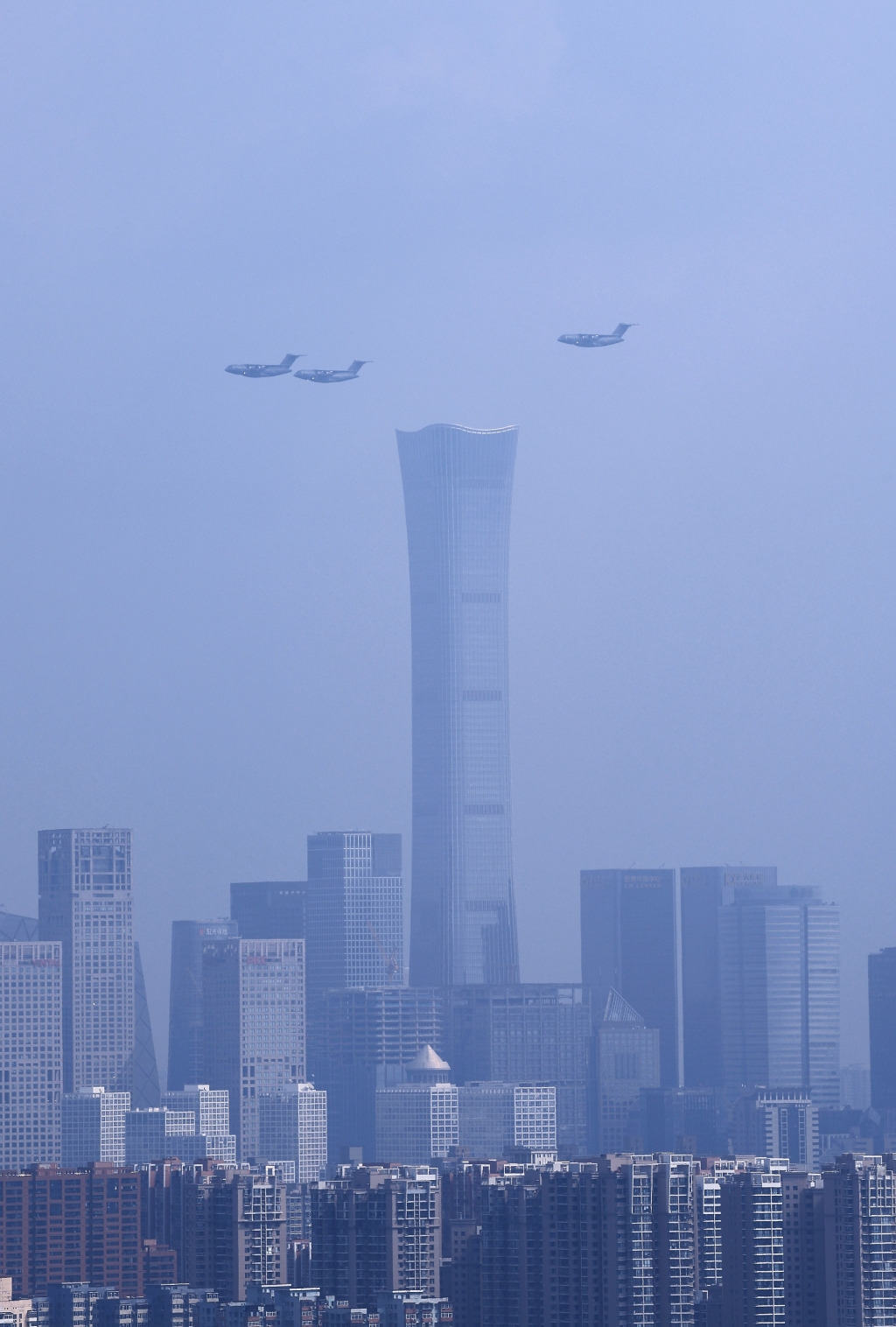 9月3日,纪念中国人民抗日战争暨世界反法西斯战争胜利80周年大会在北京隆重举行。这是运输机梯队接受检阅。 新华社记者 戴翘楚 摄