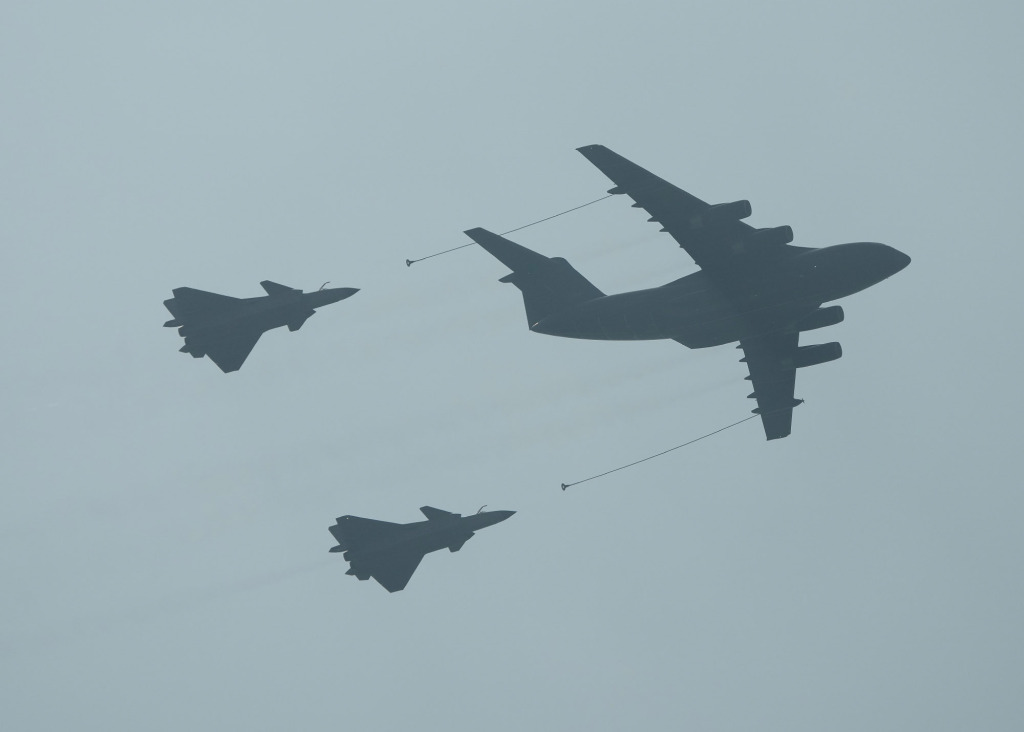 运油-20A与轰-6N、歼-16、歼-20飞机组成加受油机梯队,以预加油状态飞过天安门广场上空,接受祖国和人民检阅。