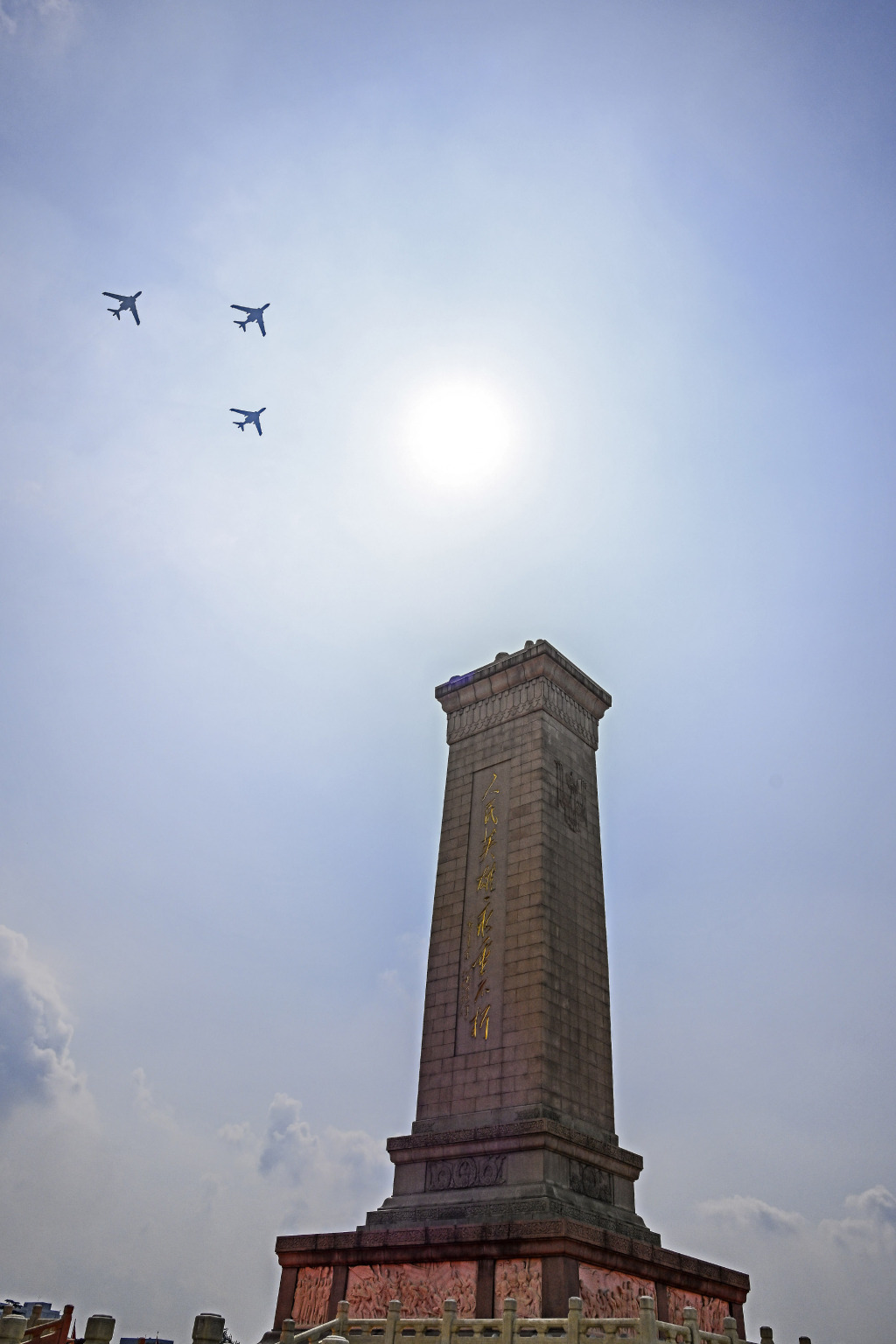 9月3日,纪念中国人民抗日战争暨世界反法西斯战争胜利80周年大会在北京隆重举行。这是加受油机梯队通过天安门广场。 新华社记者 牟宇 摄