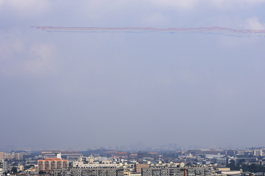 9月3日,纪念中国人民抗日战争暨世界反法西斯战争胜利80周年大会在北京隆重举行。这是教练机梯队接受检阅。 新华社记者 许雅楠 摄