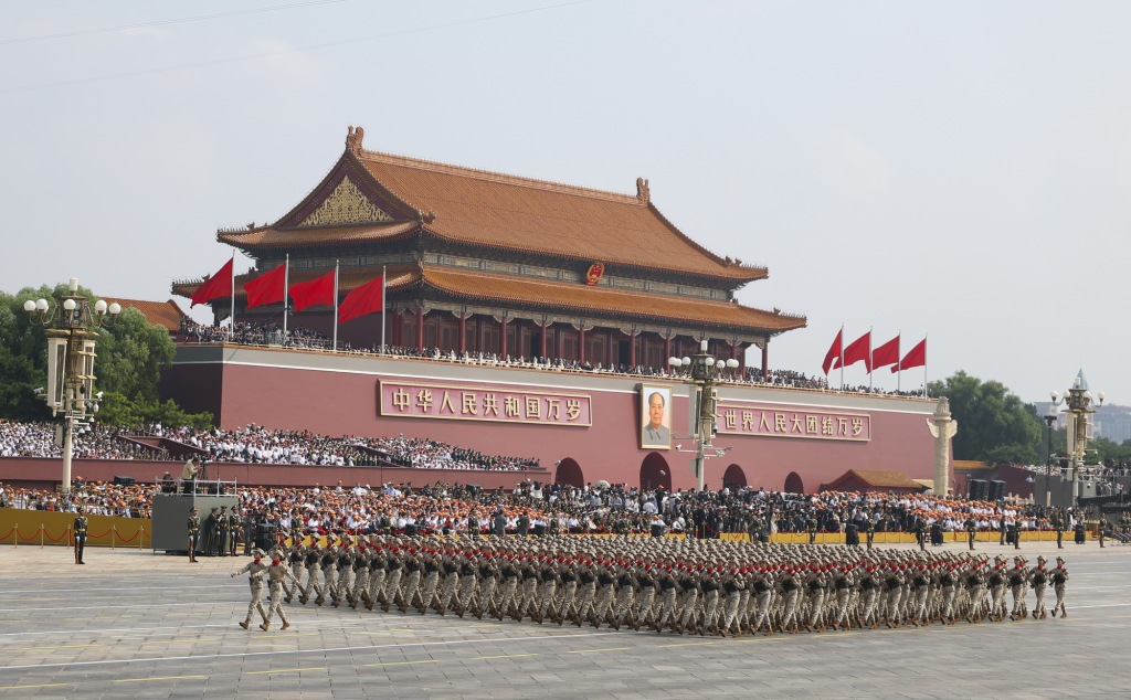 这是民兵方队走过天安门广场。新华社记者 邢广利 摄