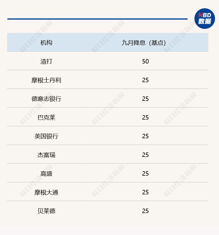 机构对美联储 9 月降息幅度的预测