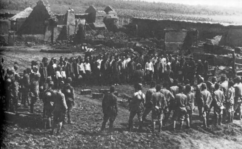 第一条是"归屯并户"。简单来说就是将分散的庄、屯强行合并,把民众集中驱赶到比较大的"集团部落"统一居住,在部落周围修建高墙,驻兵防守,百姓下地干活也要出示良民证。在部落之内,实行粮食配给制度,每天领每天的粮食,家家户户都没有存粮。