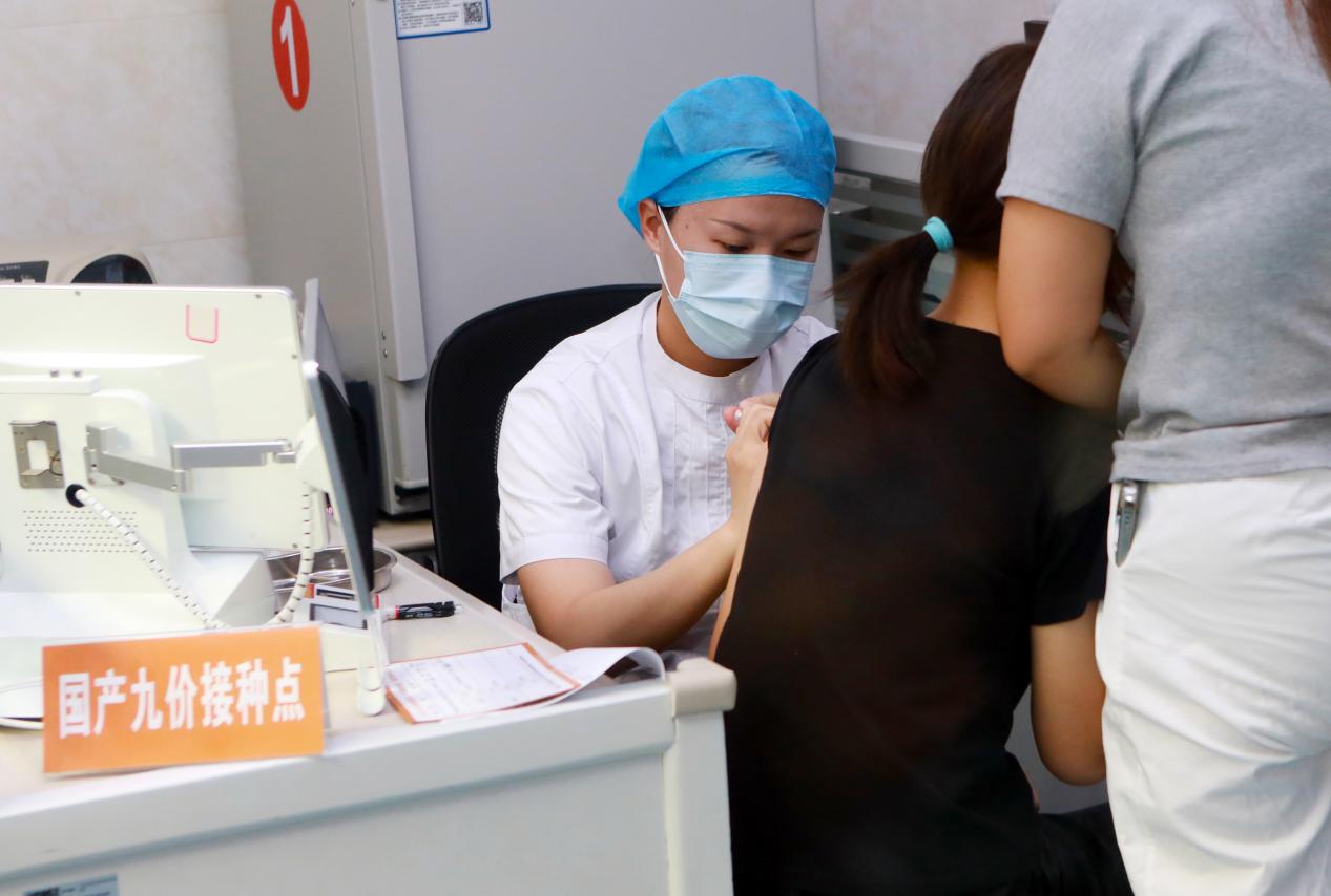 首批国产九价疫苗接种现场。郑伟明 摄