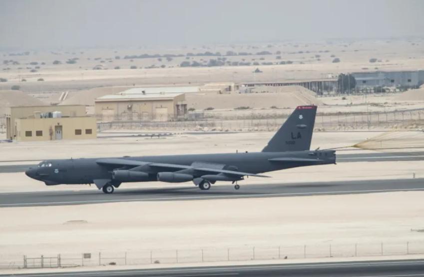 美国轰炸机降落在卡塔尔乌代德空军基地跑道上。图源:外媒