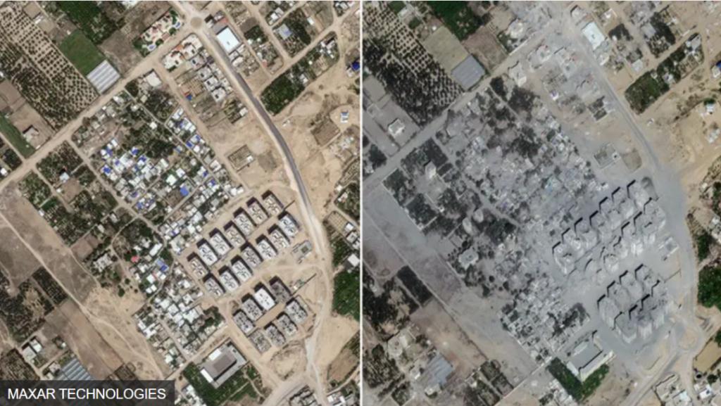 卫星图片显示加沙地区空袭前后对比。图源:外媒