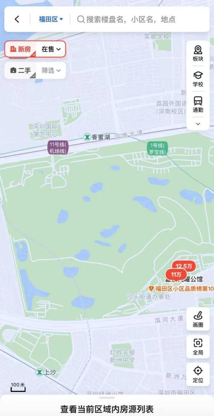 每经记者查询中介平台获悉,深圳高尔夫俱乐部周边新房住宅价格约 11 万元 / 平方米 ~13 万元 / 平方米,该区域也是深圳顶级豪宅圈之一。这块土地目前估价暂时难以得到精准答案,不过,其金贵程度从相邻地块竞拍成交价和周边新房频频诞生 " 日光盘 " 中或可见一斑。