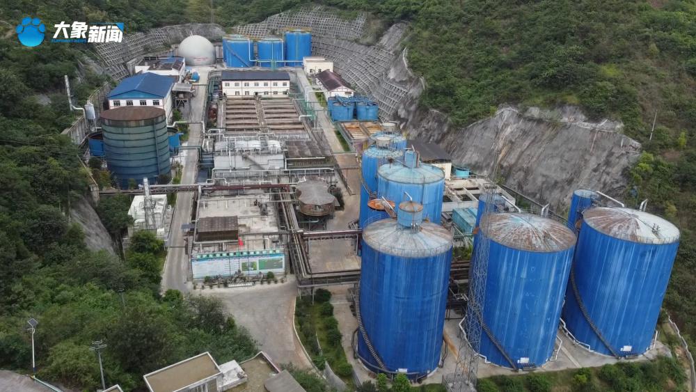 进不去厂区的唐显策只能领着大象新闻记者绕路爬上远处山坡,观察废水处理厂运行情况。