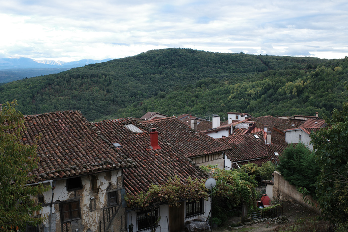 通往萨拉曼卡南部的深山一隅,莫加拉斯(Mogarraz)是西班牙葡萄酒之路上一个形状狭长的村子。村中遍布木骨结构的老房子,暮色中金色的风和光,渗透在老墙垣的石缝里。