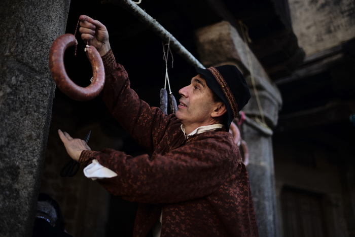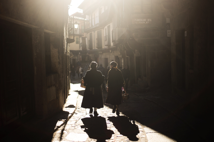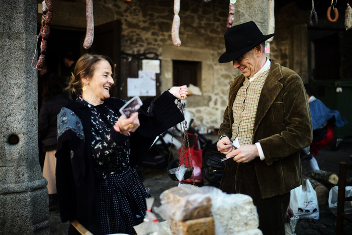 老妪与少女,挽起发髻,长裙及地,每个人都搭着祖母辈的绣花马尼拉披肩,婀娜的流苏垂到腰间。男士则穿着古老的刺绣衬衫、呢绒西装或者猎装,回到农人、乡绅或是骑士的身份,盛事的推动者费尔明家族的老小也一身古典服饰。人们跳着萨拉曼卡传统的查拉达对舞,用古钱币购买甜点与蜂蜜,连灌肠的配方和小贩们吆喝的句子都是老的。传统在这里正在被享受和续写,而传统也稳稳地托住了一个小镇的身份。