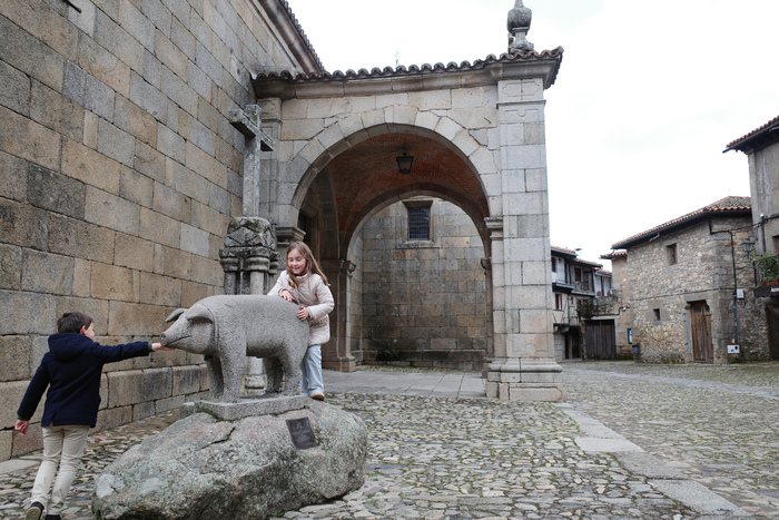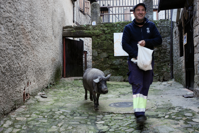 拉阿尔韦卡(La Alberca)的清晨像石拓画。阳光尚未洒满鲜花盛开的马约尔广场,巷道中已隐约传来脚步的交响。有人洒扫,有人晾晒,还有一头猪,慢吞吞踱过石阶,像个知道所有钟声来处的老人。