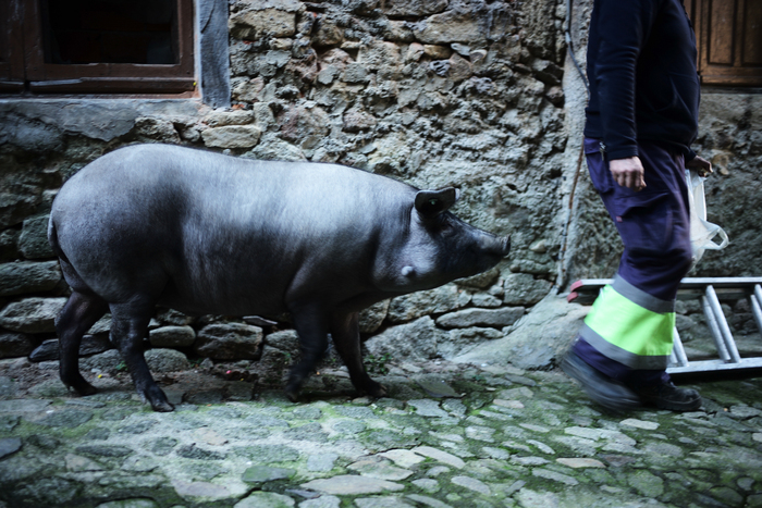 安东并非偶然闯入,它是这座山村最独特和受宠的居民。每年6月17日,费尔明会捐出一只猪作为当年的圣·安东,与此同时还诞生一位“监护人”。小猪在接受神父的祝福后,便开始它的快乐时光。监护人带它在村里散步,村民们跟它聊天喂它吃百家饭,有人早起为它采来山林里的橡果,孩子们在放学回家时摸摸它肉乎乎的背脊……