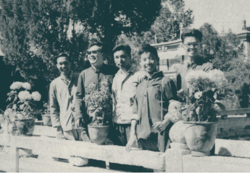 1965 年,梁世雄、牛文、姚耕云、其加达瓦、杜英信在拉萨合影。受访者供图
