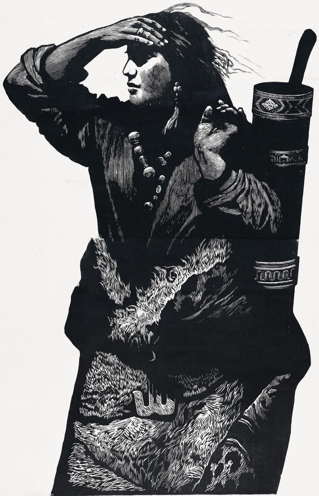 李焕民《守望》 ,黑白木刻,2014 年。受访者供图