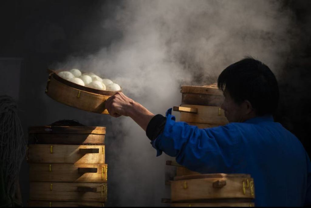本次展览也是一次突破传统的“策展实验”。策展团队摒弃线性叙事,独创“视觉关联”式展陈逻辑,将作品以“对话”形式配对呈现,引导观众主动发现色彩、构图与主题中隐藏的视觉联结。通过并置四川乡村的炊烟与上海茶馆的水汽、敦煌文物与当代建筑幕墙,展览激发“第三效应”,与本土观众的记忆和认知相互呼应,形成跨越文化的趣味互动。
