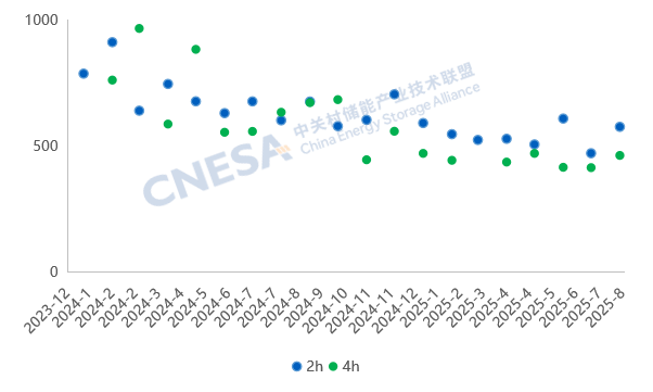其中,2h储能系统均价575.8元/kWh,同比下滑4.27%,环比上涨22.2%,价格区间为460-814.5元/kWh;4h储能系统均价462.4元/kWh,同比下滑27%,环比增长12%,价格区间为389.1-660元/kWh。